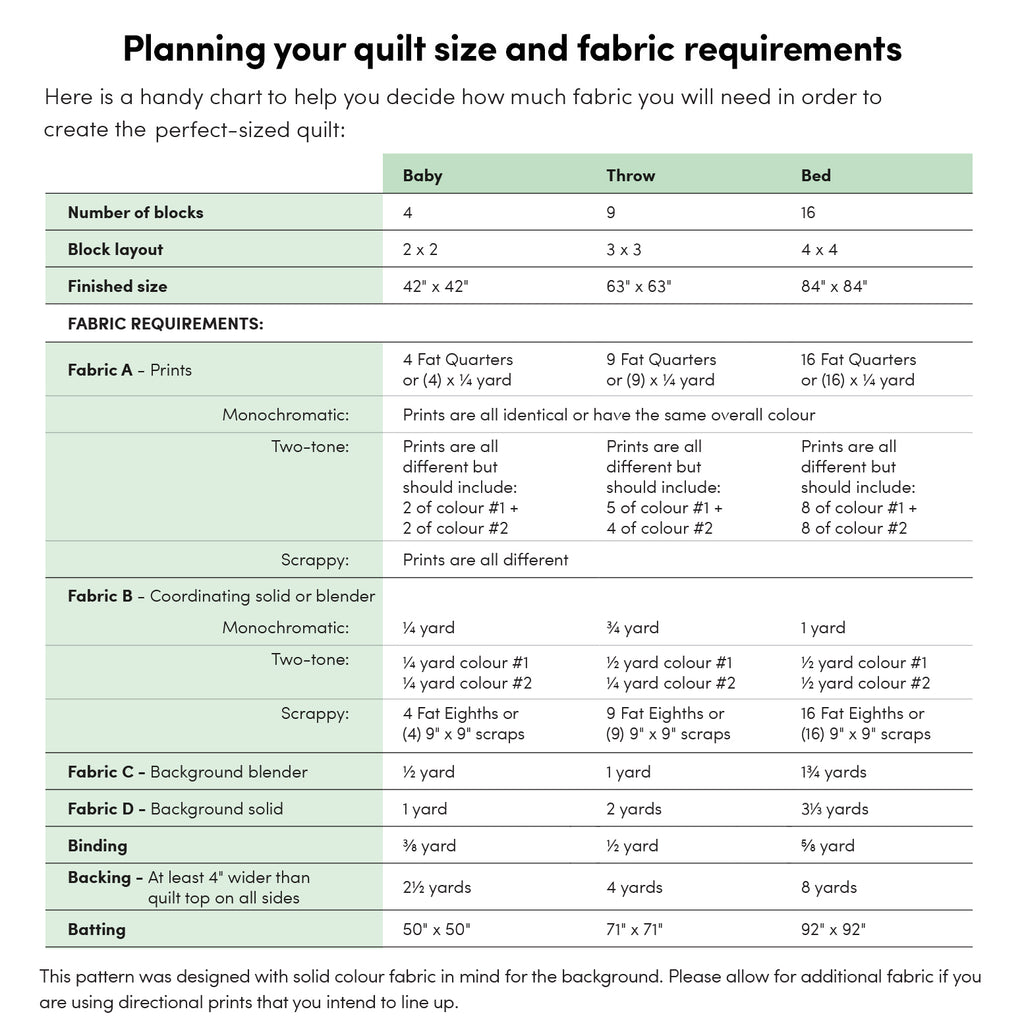 - It can be made in 3 different colour schemes: monochromatic, two-toned, or scrappy.